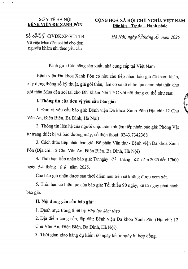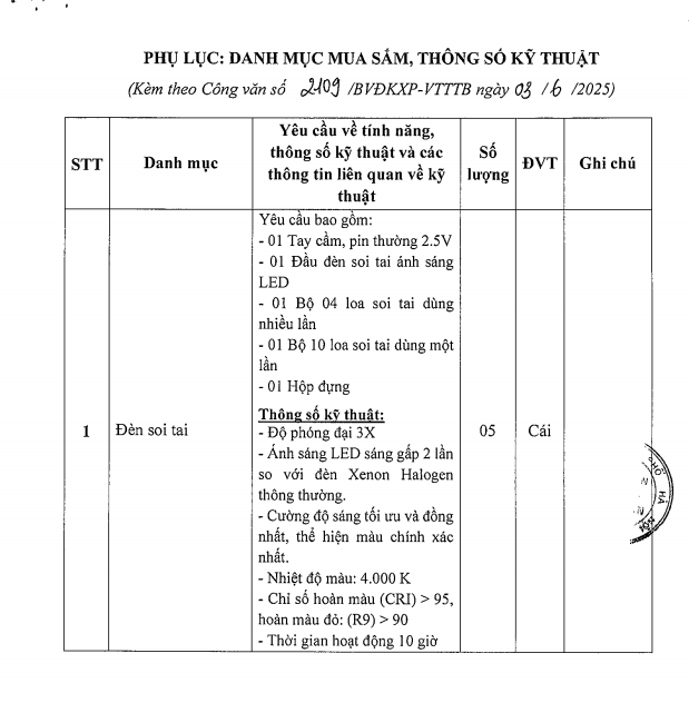 Mời chào giá mua đèn soi tai cho ĐN khám nhi 2109-2025