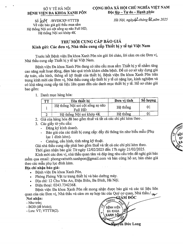 Mời chào giá mua Hệ thống nội soi cột sống 414-2025