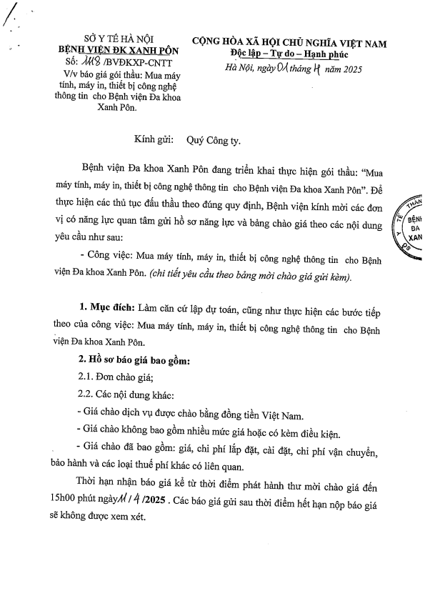 Mời chào giá: Mua máy tính, máy in, thiết bị công nghệ thông tin - CV 1118 - 2025