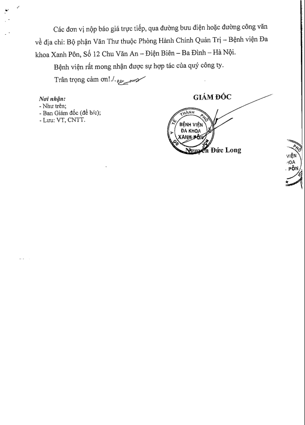 Hôm nay tôi mạnh dạn viết thư này đầu tiên tôi cảm ơn BLĐ Bệnh viện Xanh Pôn đã đào tạo được các BS có tâm huyết như các BS 2 khoa trên và cho tôi gửi lời cảm ơn đến các BS và mong BV Xanh Pôn sẽ còn nhiều BS như thế nữa. Đúng như lời Bác Hồ dạy 'Lương y như mẹ hiền' Xin chân thành cảm ơn BV