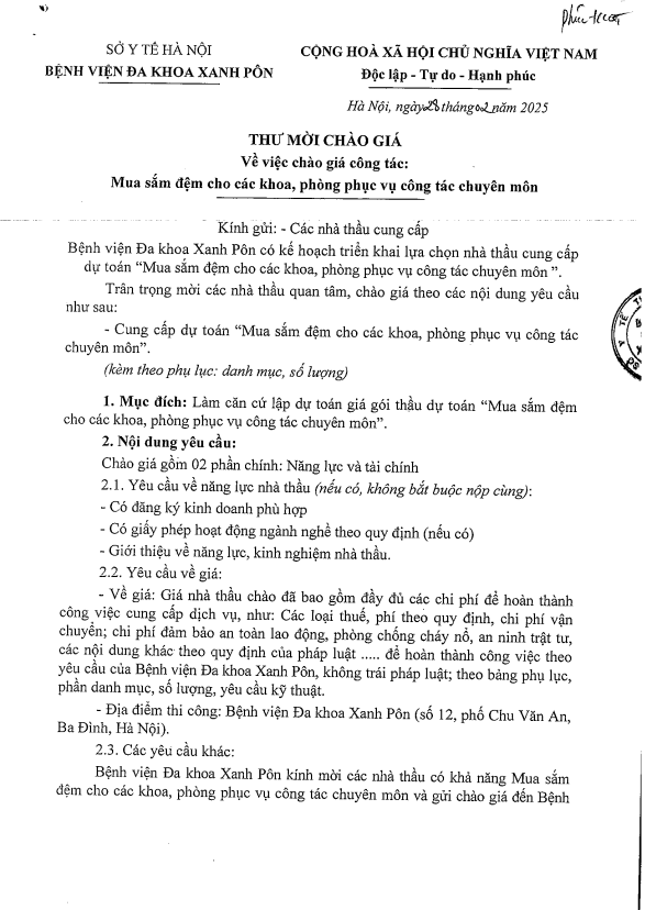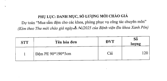Mời chào giá mua sắm đệm cho các khoa 28-02-2025