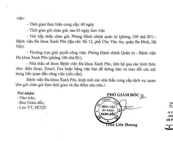 Hôm nay tôi mạnh dạn viết thư này đầu tiên tôi cảm ơn BLĐ Bệnh viện Xanh Pôn đã đào tạo được các BS có tâm huyết như các BS 2 khoa trên và cho tôi gửi lời cảm ơn đến các BS và mong BV Xanh Pôn sẽ còn nhiều BS như thế nữa. Đúng như lời Bác Hồ dạy 'Lương y như mẹ hiền' Xin chân thành cảm ơn BV