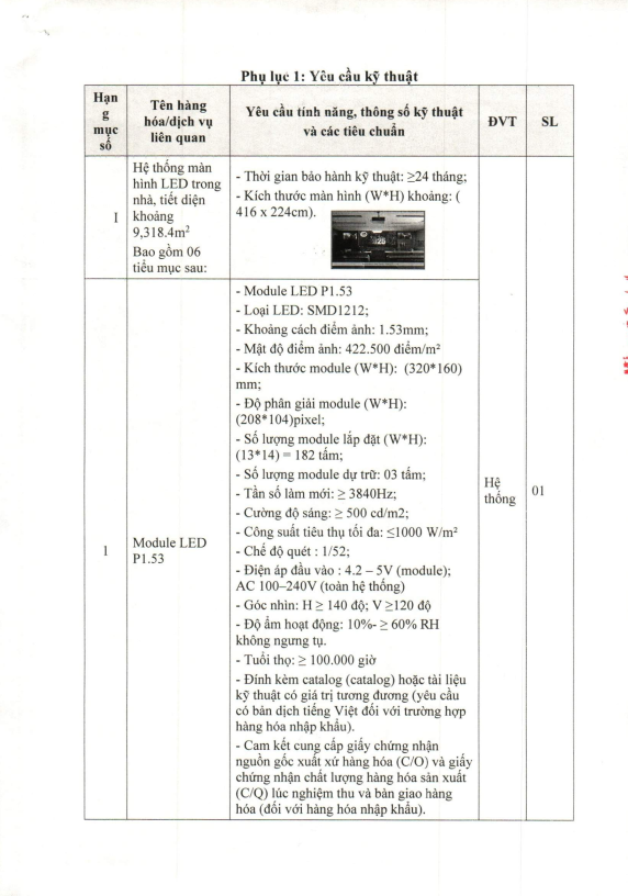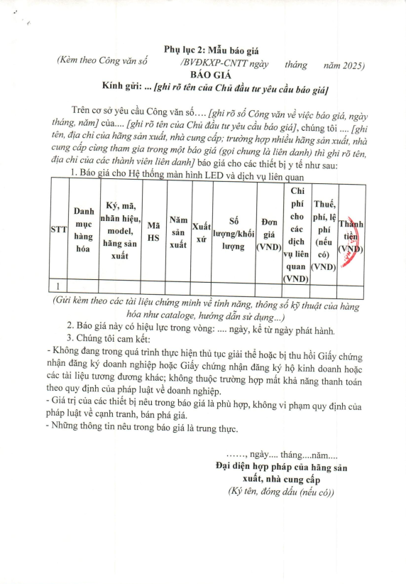 Mời chào giá - Mua sắm, lắp đặt màn hình LED hội trường Hùng Vương - CV1725 - 2025