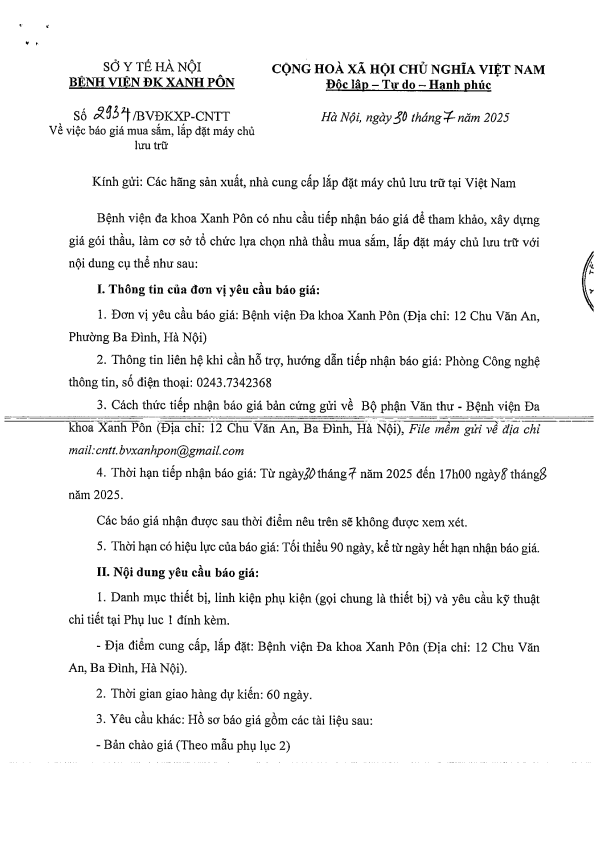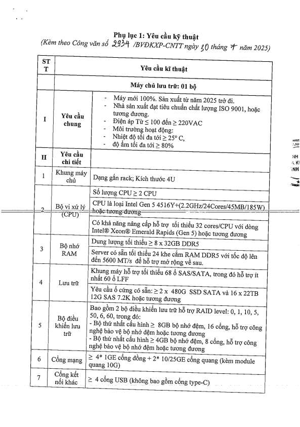 Mời chào giá - Mua sắm, lắp đặt máy chủ lưu trữ - CV 2934
