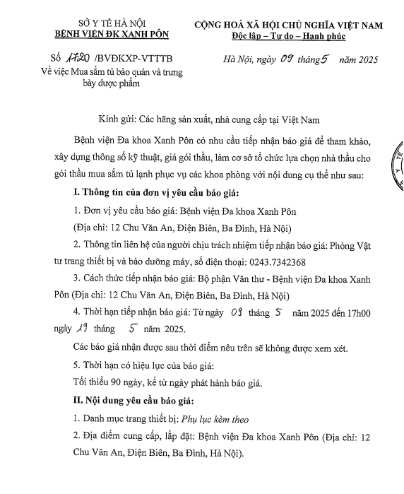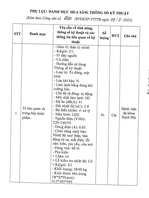 Mời chào giá mua sắm tủ bảo quản và trưng bày dược phẩm 1720-2025