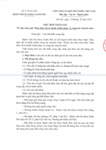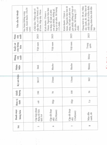 Mời chào giá mua sắm vật tư hành chính 04-08-2025