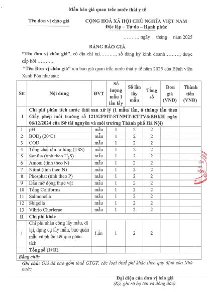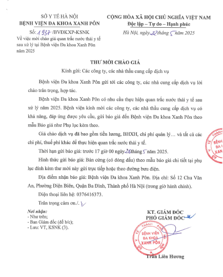 Mời chào giá quan trắc nước thải y tế 1937-2025