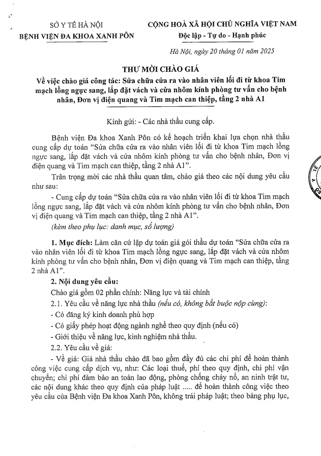 Mời chào giá sửa chữa cửa ra vào nhân viên, lắp đặt vách và cửa nhôm kính phòng tư vấn bệnh nhân tầng 2 nhà A1 2025