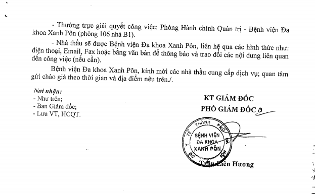 Hôm nay tôi mạnh dạn viết thư này đầu tiên tôi cảm ơn BLĐ Bệnh viện Xanh Pôn đã đào tạo được các BS có tâm huyết như các BS 2 khoa trên và cho tôi gửi lời cảm ơn đến các BS và mong BV Xanh Pôn sẽ còn nhiều BS như thế nữa. Đúng như lời Bác Hồ dạy 'Lương y như mẹ hiền' Xin chân thành cảm ơn BV