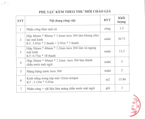 Mời chào giá sửa chữa mái khu vực kho Hành chính tầng 3 nhà C2 25-06-2025