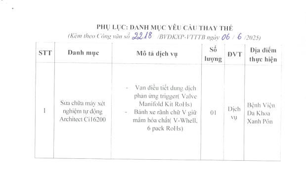 Mời chào giá sửa chữa máy xét nghiệm tự động 2218-2025