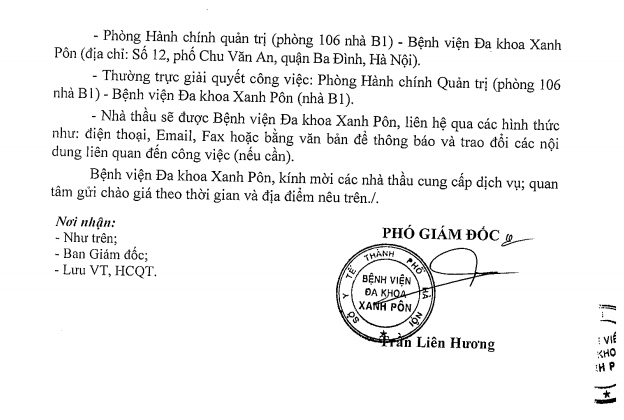 Hôm nay tôi mạnh dạn viết thư này đầu tiên tôi cảm ơn BLĐ Bệnh viện Xanh Pôn đã đào tạo được các BS có tâm huyết như các BS 2 khoa trên và cho tôi gửi lời cảm ơn đến các BS và mong BV Xanh Pôn sẽ còn nhiều BS như thế nữa. Đúng như lời Bác Hồ dạy 'Lương y như mẹ hiền' Xin chân thành cảm ơn BV