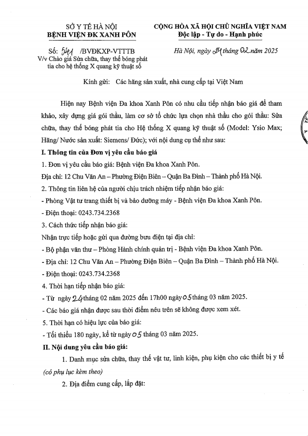 Mời chào giá sửa chữa, thay thế bóng phát tia cho hệ thống X quang số 541-2025