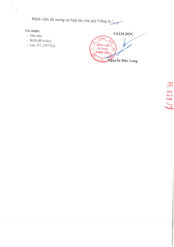 Hôm nay tôi mạnh dạn viết thư này đầu tiên tôi cảm ơn BLĐ Bệnh viện Xanh Pôn đã đào tạo được các BS có tâm huyết như các BS 2 khoa trên và cho tôi gửi lời cảm ơn đến các BS và mong BV Xanh Pôn sẽ còn nhiều BS như thế nữa. Đúng như lời Bác Hồ dạy 'Lương y như mẹ hiền' Xin chân thành cảm ơn BV
