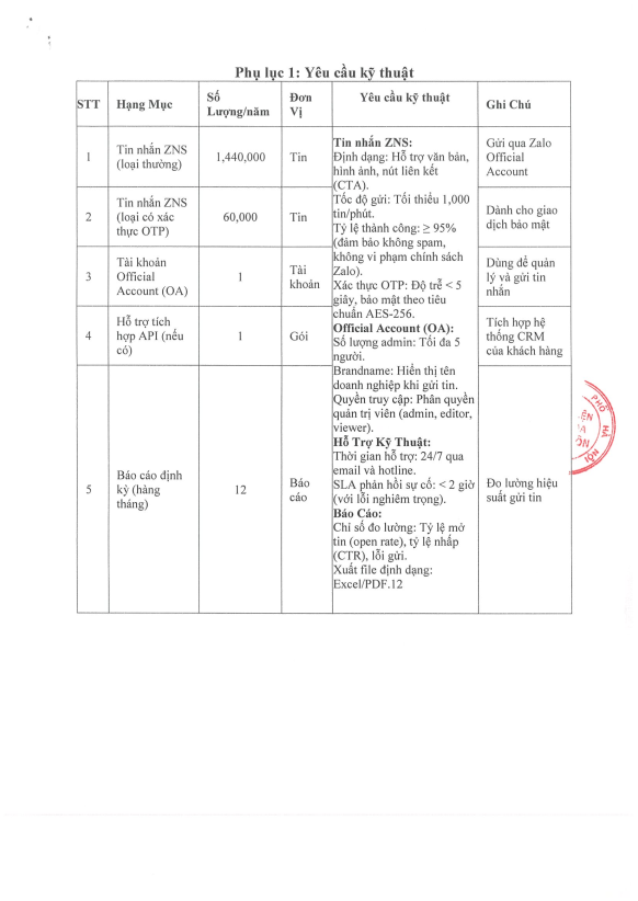 Mời chào giá - Thuê dịch vụ tin nhắn Zalo ZNS chăm sóc khách hàng - CV1897 - 2025
