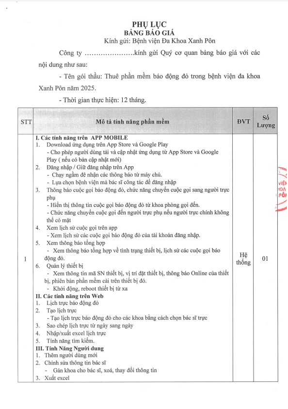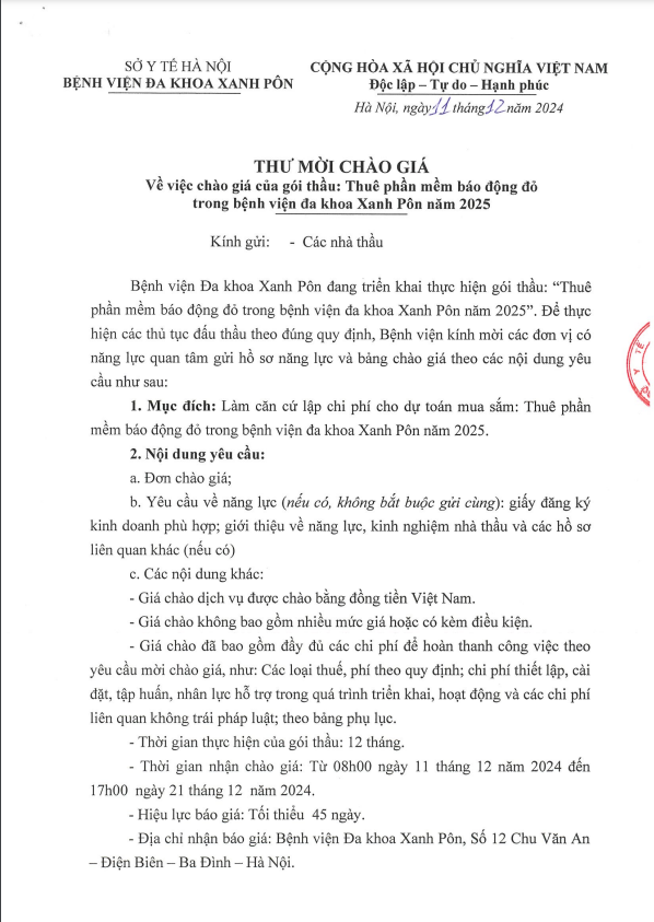 Mời chào giá: Thuê phần mềm báo động đỏ năm 2025 - 2024