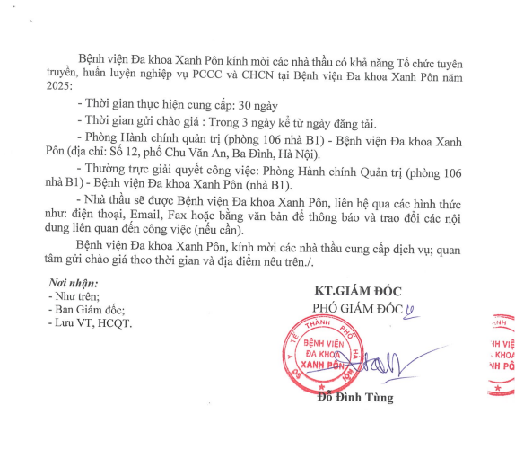 Hôm nay tôi mạnh dạn viết thư này đầu tiên tôi cảm ơn BLĐ Bệnh viện Xanh Pôn đã đào tạo được các BS có tâm huyết như các BS 2 khoa trên và cho tôi gửi lời cảm ơn đến các BS và mong BV Xanh Pôn sẽ còn nhiều BS như thế nữa. Đúng như lời Bác Hồ dạy 'Lương y như mẹ hiền' Xin chân thành cảm ơn BV