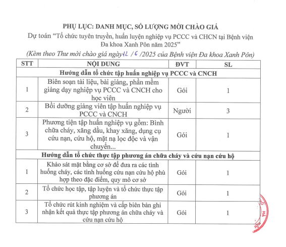 Mời chào giá tổ chức tuyên truyền, huấn luyện nghiệp vụ PCCC và CHCN 12-06-2025