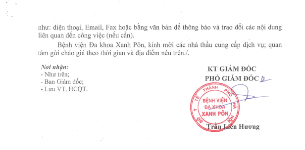 Hôm nay tôi mạnh dạn viết thư này đầu tiên tôi cảm ơn BLĐ Bệnh viện Xanh Pôn đã đào tạo được các BS có tâm huyết như các BS 2 khoa trên và cho tôi gửi lời cảm ơn đến các BS và mong BV Xanh Pôn sẽ còn nhiều BS như thế nữa. Đúng như lời Bác Hồ dạy 'Lương y như mẹ hiền' Xin chân thành cảm ơn BV