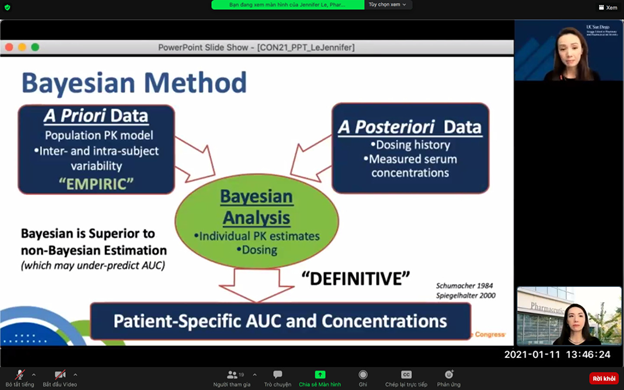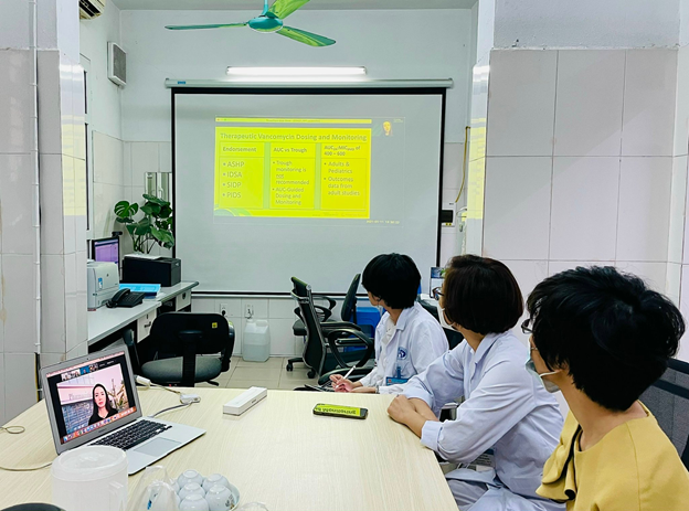 Buổi sinh hoạt khoa học được tổ chức bởi Bộ môn Dược lâm sàng – Trường Đại học Dược Hà Nội phối hợp với Khoa Dược, Bệnh viện Đa khoa Xanh Pôn và một số bệnh viện nhi tại Việt Nam. Báo cáo tại buổi sinh hoạt khoa học, GS. Jennifer Le, đại học California, San Diego, USA đã trình bày về phương pháp và ứng dụng việc đo nồng độ vancomycin trong máu, đặc biệt nhấn mạnh ý nghĩa của việc giám sát nồng độ vancomycin trên bệnh nhân Nhi.