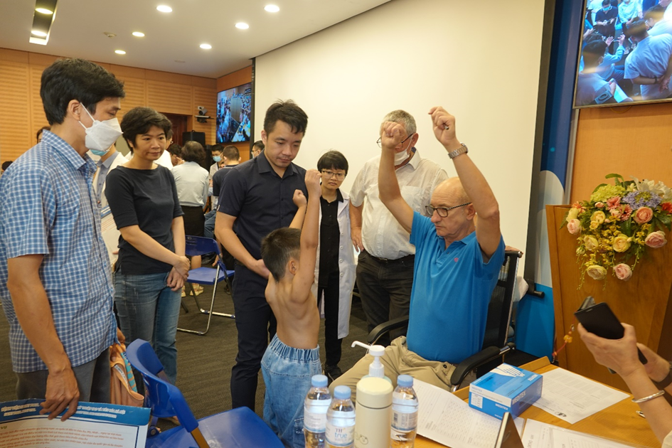 Đoàn chuyên gia Children Action gồm GS. Jérôme SALES de GAUZY - Trưởng Khoa Chỉnh Hình, Bệnh viện Nhi ĐH Toulouse (Pháp), GS. Jorge KNORR GIMÉNEZ - Trưởng Khoa Chấn Thương Chỉnh Hình, Bệnh viện trường ĐH Saint Joan de Déu de Barcelona (Tây Ban Nha), BS Jean-Francois TRINCHERO - Bác sỹ Gây Mê - Hồi Sức, Bệnh viện Nhi ĐH Toulouse (Pháp), Bà Tạ Thị Minh Giang - Điều phối viên Tổ chức Children Action.