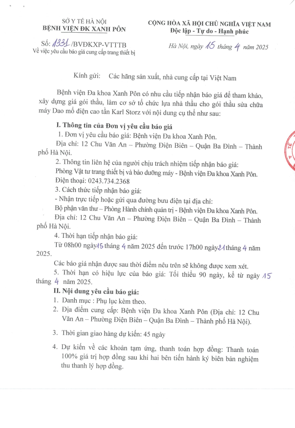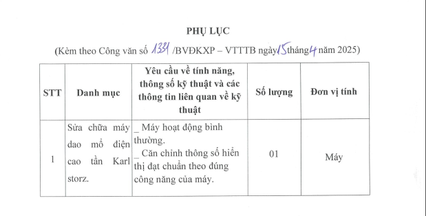 Báo giá cung cấp trang thiết bị 1331-2025