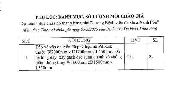 Báo giá sửa chữa hố thang hàng nhà D 5-5-2025