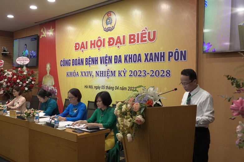 Phát biểu chỉ đạo tại Đại hội, đồng chí Trịnh Tố Tâm, Chủ tịch Công đoàn ngành Y tế Hà Nội, đồng chí Nguyễn Đức Long, Giám đốc Bệnh viện Đa khoa Xanh Pôn đã ghi nhận, biểu dương và chúc mừng những thành tích của Công đoàn Bệnh viện đã đạt được trong nhiệm kỳ qua.