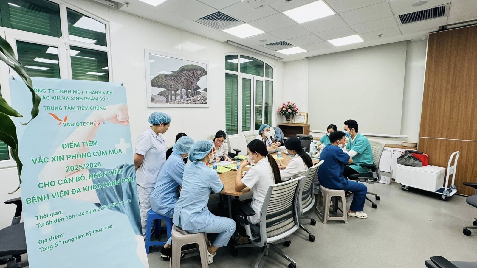 Trong 3 ngày 22–24/10/2025, Bệnh viện Đa khoa Xanh Pôn đã tổ chức chương trình tiêm vắc xin phòng cúm mùa dành cho toàn thể cán bộ, nhân viên y tế và giáo viên đang công tác tại bệnh viện.