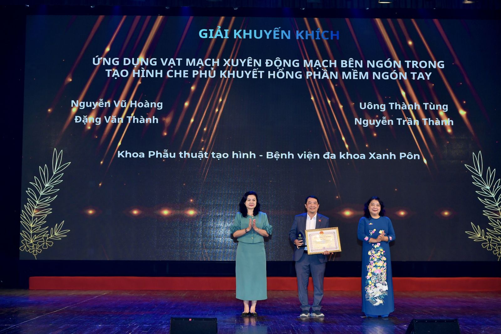 Khoa Phẫu thuật Tạo hình - Bệnh viện Đa khoa Xanh Pôn đã xuất sắc giành giải khuyến khích với đề tài "Ứng dụng vạt mạch xuyên động mạch bên trong tạo hình che phủ khuyết hổng phần mềm ngón tay".