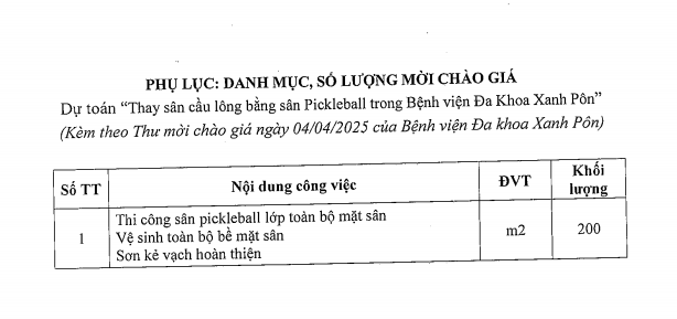 Chào giá công tác thay san cầu lông bằng sân Pickleball 4-4-2025
