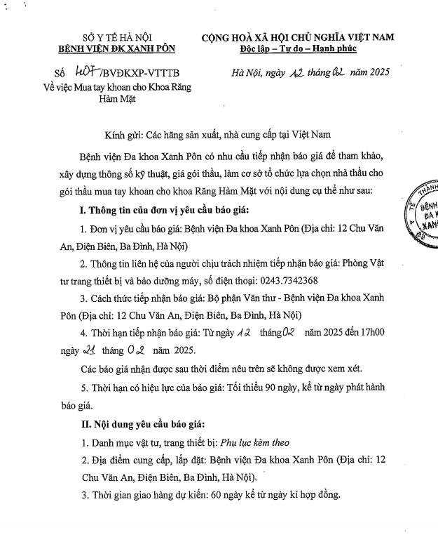 Chào giá mua máy khoan tay cho khoa Răng Hàm Mặt