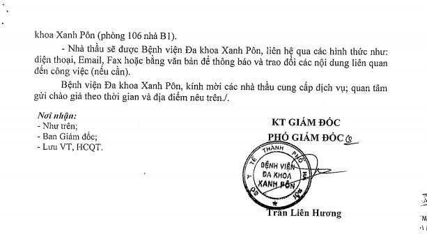 Hôm nay tôi mạnh dạn viết thư này đầu tiên tôi cảm ơn BLĐ Bệnh viện Xanh Pôn đã đào tạo được các BS có tâm huyết như các BS 2 khoa trên và cho tôi gửi lời cảm ơn đến các BS và mong BV Xanh Pôn sẽ còn nhiều BS như thế nữa. Đúng như lời Bác Hồ dạy 'Lương y như mẹ hiền' Xin chân thành cảm ơn BV
