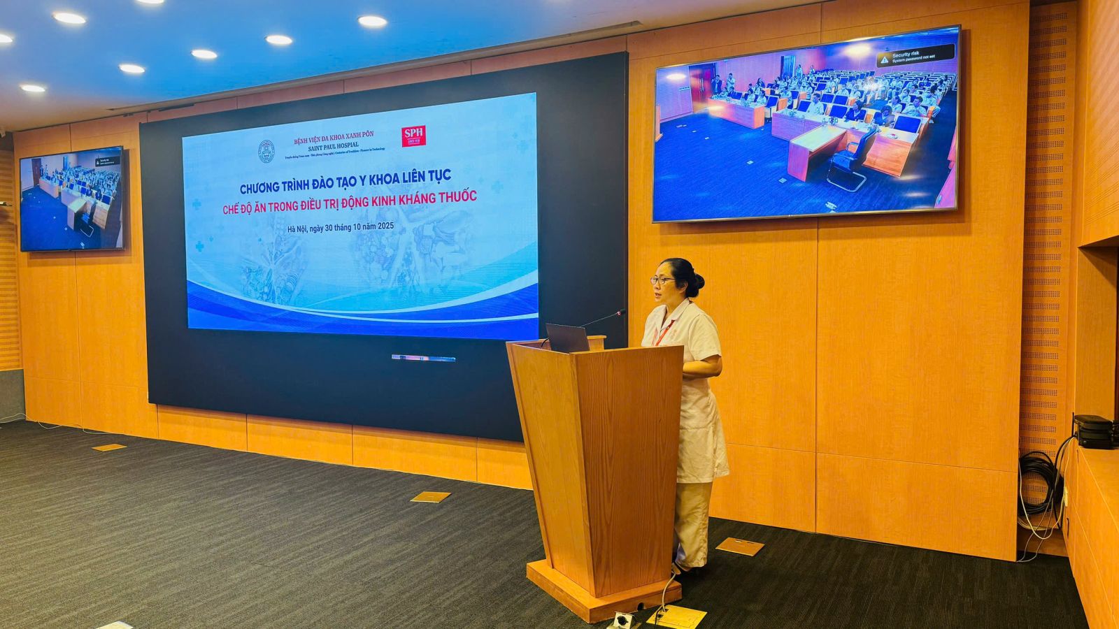Chiều ngày 30/10, Bệnh viện Đa khoa Xanh Pôn tổ chức chương trình Đào tạo y khoa liên tục với chủ đề “Chế độ ăn trong điều trị động kinh kháng thuốc”. Chương trình nhằm cập nhật kiến thức chuyên môn cho đội ngũ y bác sĩ về các phương pháp dinh dưỡng hỗ trợ điều trị, đặc biệt là mô hình dinh dưỡng Ketogenic (Keto), liệu pháp đã được chứng minh có hiệu quả trong quản lý động kinh kháng thuốc ở trẻ em và người lớn.