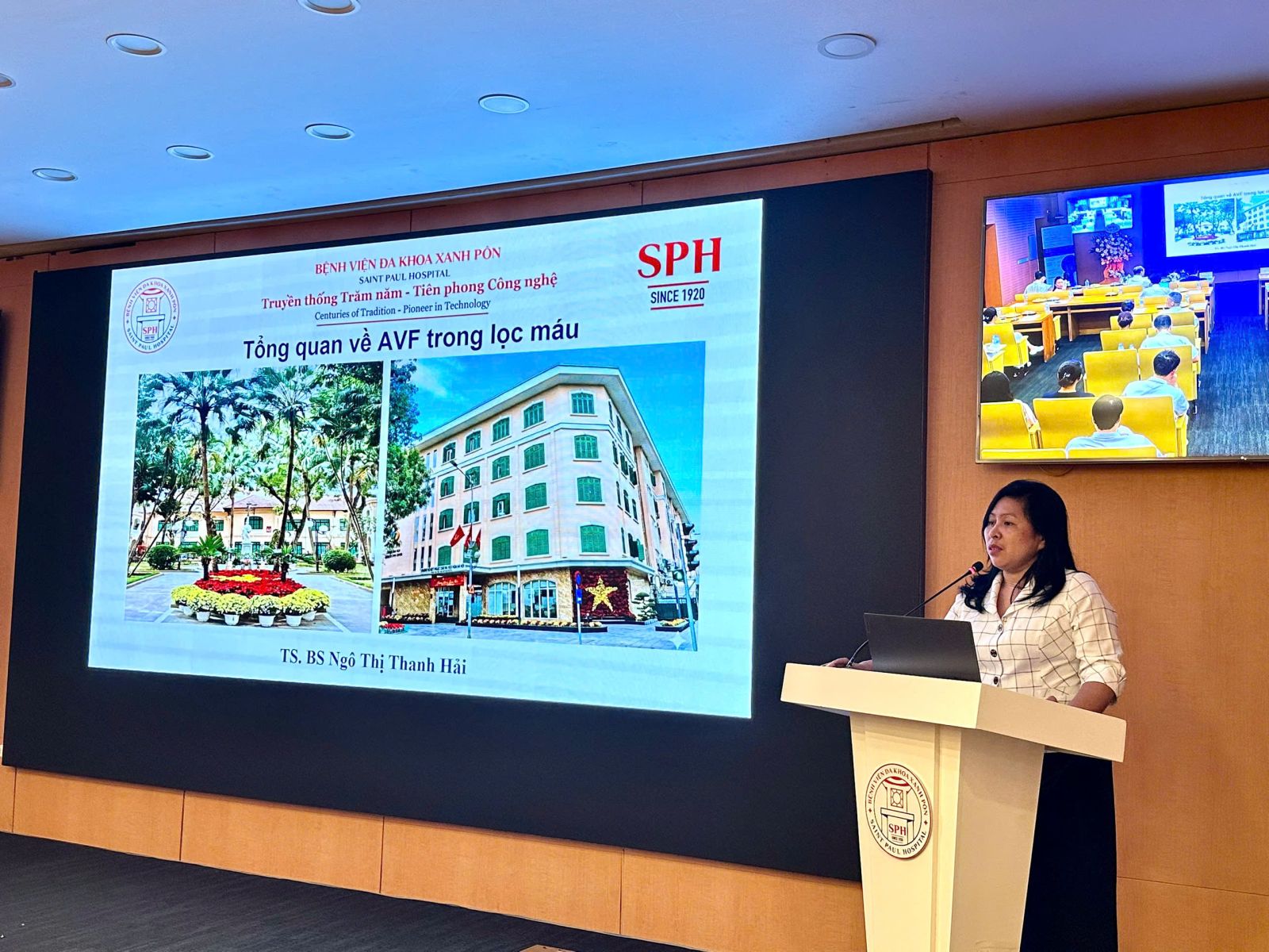 Tham dự hội thảo có TS.BS. Trần Văn Trung – Phó Giám đốc Bệnh viện Đa khoa Xanh Pôn; TS.BS. Dương Trung Kiên – Chủ tịch Công đoàn, Trưởng Khoa Phẫu thuật Thần kinh; TS.BS. Ngô Thị Thanh Hải – Trưởng khoa Nội tổng hợp II; BSCKII. ThS. Đỗ Đức Thắng – Trưởng khoa Phẫu thuật lồng ngực; ThS.BS. Nguyễn Tùng Sơn – Trung tâm Tim mạch và Lồng ngực, Bệnh viện Hữu nghị Việt Đức, cùng đông đảo các bác sĩ, nhân viên y tế và học viên tham dự trực tiếp và trực tuyến.