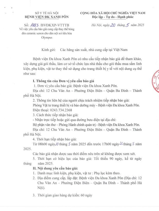 Mời chào giá cung cấp thay thế đèn ceramic xenon cho dàn nội soi tiêu hóa 1883-2025