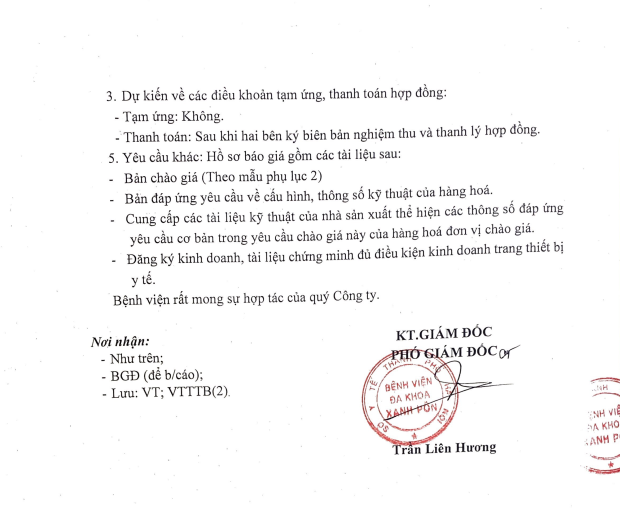 Mời chào giá gọi thầu mua sắm TTB cho khoa HSTCCĐ 4341-2024