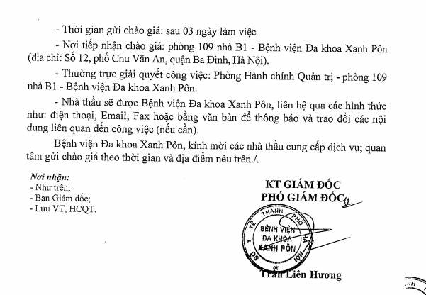 Hôm nay tôi mạnh dạn viết thư này đầu tiên tôi cảm ơn BLĐ Bệnh viện Xanh Pôn đã đào tạo được các BS có tâm huyết như các BS 2 khoa trên và cho tôi gửi lời cảm ơn đến các BS và mong BV Xanh Pôn sẽ còn nhiều BS như thế nữa. Đúng như lời Bác Hồ dạy 'Lương y như mẹ hiền' Xin chân thành cảm ơn BV