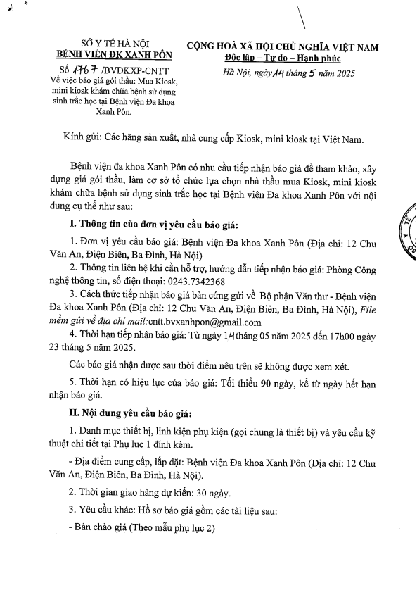 Mời chào giá - Mua Kiosk, mini Kiosk sử dụng sinh trắc học - CV1767 - 2025