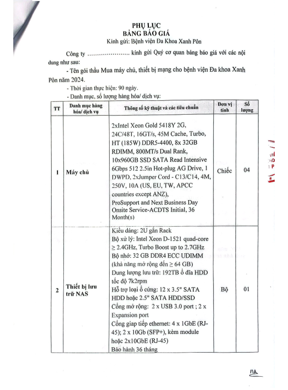 Mời chào giá - Mua máy chủ, thiết bị mạng - CV332-2025