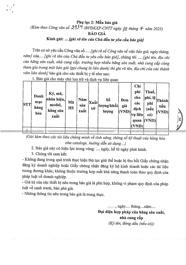 Mời chào giá - Mua sắm, lắp đặt máy chủ lưu trữ - CV 2934