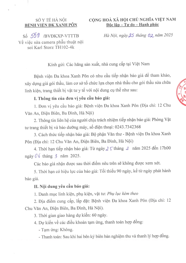 Mời chào giá sửa chữa camera phẫu thuật nội soi TH102-4k 559-2025