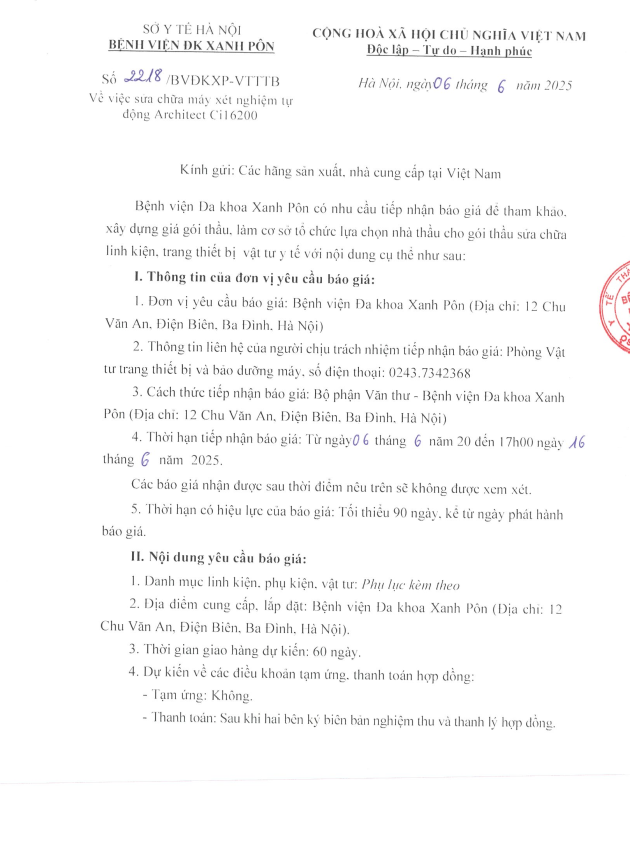 Mời chào giá sửa chữa máy xét nghiệm tự động 2218-2025