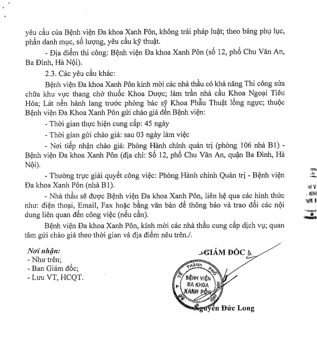 Mời chào giá thi công sửa chữa khu vực thang chở thuốc khoa Dược, làm trần nhà cầu... 20-02-2025