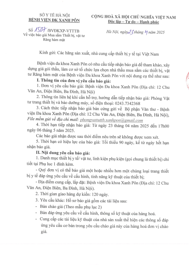 Mời chào giá thiết bị, vật tư răng hàm mặt 1507-2025