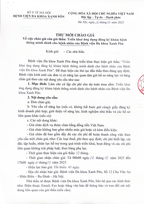 Mời chào giá triển khai ứng dụng đăng ký khám bệnh thông minh dành cho bệnh nhân 28-02-2025
