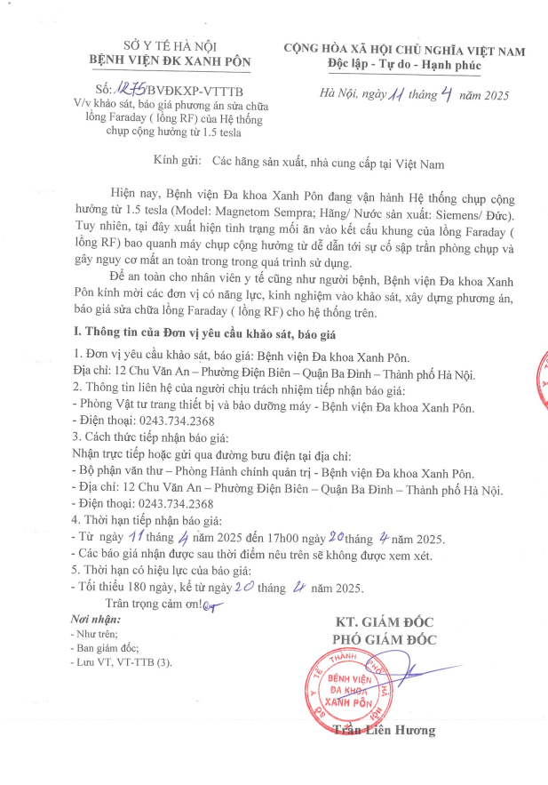Mời khảo sát, báo giá phương án sửa chữa lồng Faraday 1275-2025